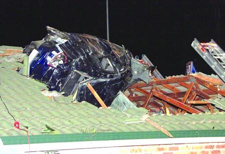 據(jù)英國(guó)媒體報(bào)道,澳大利亞悉尼市郊區(qū)10月19日發(fā)生了一起離奇的交通事故,一輛疾駛中的汽車(chē)突然失控,在飛越了幾十米后砸爛了一處平房的屋頂,屋內(nèi)一家三口僥幸逃脫。