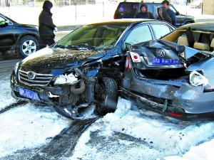 在距離事發(fā)地點(diǎn)不到5米的一家汽車(chē)銷(xiāo)售店上班的閻先生稱(chēng),事發(fā)時(shí)外面很安靜,他和店里的同事接連聽(tīng)見(jiàn)兩下撞擊聲,出門(mén)就看到慘劇發(fā)生。豐田車(chē)的左前側(cè)受損嚴(yán)重,前輪搖搖欲墜。而速騰車(chē)和廣本車(chē)的車(chē)尾部被撞嚴(yán)重,完全癟了進(jìn)去,其中速騰車(chē)后備箱里的備胎還被撞了出來(lái)!罢厥仑S田車(chē)?yán)镉?人,司機(jī)下車(chē)后還是鎮(zhèn)定地安撫乘客。”閻先生說(shuō),被撞的男子趴在雪地里,頭上滿(mǎn)是鮮血。隨后999趕到,據(jù)急救人員稱(chēng),剛開(kāi)始男子還有呼吸,但2分鐘之后,男子死亡。
