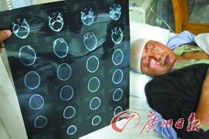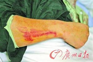 昨天晚上,記者趕到了救治黃國順的中山三院。當(dāng)時,護士正在為他換藥包扎傷口,黃國順指了指床下的染紅藥布,告訴記者這是他妻子剛剛為他擦掉的血跡。