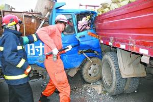 昨天下午5時許,大興區(qū)黃村鎮(zhèn)劉村附近,一輛農(nóng)用四輪車和一輛卡車相撞,農(nóng)用四輪車上兩人被卡,大興區(qū)西紅門消防中隊迅速趕到現(xiàn)場,將被困人員救出,所幸兩人無生命危險。