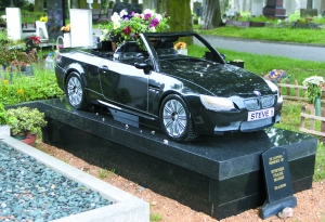 英國(guó)《每日郵報(bào)》網(wǎng)絡(luò)版5日援引馬什女兒克麗的話報(bào)道,馬什從小就是一個(gè)車迷,而且對(duì)德國(guó)“寶馬”汽車公司的產(chǎn)品情有獨(dú)鐘!八傞_(kāi)寶馬車,”克麗說(shuō),“我們不能為他樹(shù)一個(gè)普通的墓碑!瘪R什的家人選擇他最喜愛(ài)的“寶馬”M3敞篷轎跑車作為墓碑的原型,委托國(guó)外一家工廠制造。墓碑由花崗巖制成,重大約一噸。墓碑上有完整的儀表板、車牌,每個(gè)車輪上印有“寶馬”標(biāo)志。馬什的家人在“寶馬車”的雨刮下放置一張違規(guī)停車罰單,以表明馬什是一個(gè)具有幽默感的人。馬什的家人為這個(gè)墓碑花費(fèi)大約7.5萬(wàn)美元。這一金額與真車價(jià)格相差無(wú)幾。