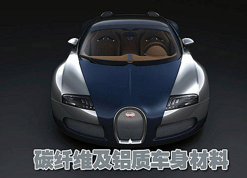 其車身外觀主要由碳纖維和鋁金屬構(gòu)成,其中碳纖維采用的藍(lán)色噴涂顏色,而其鋁金屬則是其本身的顏色,不過經(jīng)過了拋光處理。較大的輪轂采用的為午夜藍(lán)色以及金剛石刻磨的雙色調(diào)裝飾。車廂內(nèi)部采用了優(yōu)質(zhì)的Grand Sport真皮裝飾,營造了內(nèi)部典雅和諧的格調(diào)。