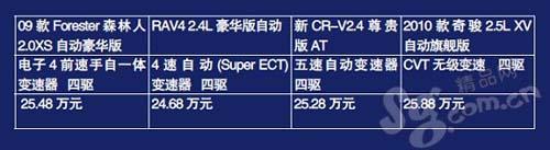 斯巴魯森林人與競爭國產(chǎn)車型價(jià)格比較