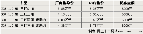 據(jù)天津一汽夏利4S店銷(xiāo)售人員介紹,全新夏利N5有望在下個(gè)月上市,預(yù)計(jì)售價(jià)4.88-5.38萬(wàn)元,目前沒(méi)有展車(chē)到店,所以仍然不接受這款新車(chē)的預(yù)訂。目前老款夏利N3現(xiàn)車(chē)比較齊全,而且全系車(chē)型都可以優(yōu)惠6000元,價(jià)格全線跌入三萬(wàn)元區(qū)間。