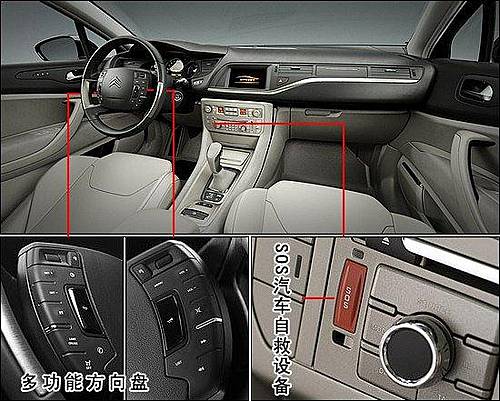 全新的C5采用第二代的中央固定控制式方向盤,包括有覆膜的控制鍵,相當便于巡航控制,收聽廣播或是接電話。新車還可以選裝雪鐵龍最新一代的導航裝備,提供有一個7英寸的顯示屏,語音激活的GSM電話,音響系統(tǒng)和衛(wèi)星廣播系統(tǒng)。雪鐵龍的大型車輛以提供頂級的乘員舒適而聞名,全新的C5亦不例外,而且還特別注意了車內(nèi)噪聲,懸掛與座椅。
