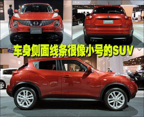 2008年3月東風(fēng)日產(chǎn)正式推出了首款交叉車型逍客(Qashqai)。逍客又可以稱的上是中國汽車市場上的第一款真正意義上的跨界車。逍客不僅擁有SUV的時尚外觀和越野性,又兼顧了轎車的舒適性和省油優(yōu)勢,憑借這些優(yōu)勢逍客也贏得了大消費者的青睞。同時日產(chǎn)汽車看準(zhǔn)了這個市場,將大量的人力物力投入到新款交叉車型的研發(fā)上。近日日產(chǎn)就在英國當(dāng)?shù)匕l(fā)布全新一款入門級跨界車型-JUKE,英國當(dāng)?shù)厥蹆r區(qū)12,795英鎊至19,995英鎊之間,約合人民幣12.7萬——19.8萬元。單從售價上看JUKE還是相當(dāng)具有市場競爭力的,下面就讓我們一同領(lǐng)略一下JUKE的風(fēng)采。