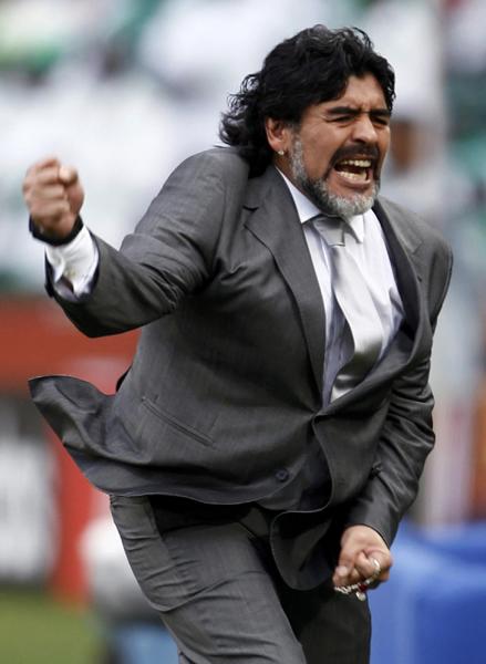 馬拉多納回來(lái)了,以一個(gè)新身份——球王主教練,帶領(lǐng)梅西等一班天才,想要體驗(yàn)真正黃袍加身的快感。北京時(shí)間6月12日晚,阿根廷小勝非洲雄鷹,馬拉多納用快感在鉆石王國(guó)肆虐了一把,熊抱木訥梅西,親了又親。