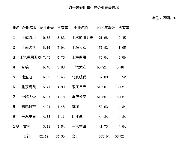 數(shù)據(jù)顯示,受益于上汽通用五菱、上海大眾、上海通用的聯(lián)合發(fā)力,上汽去年銷量同比增長了57.23%,其中,生產(chǎn)微型車的上汽通用五菱貢獻(xiàn)了97.68萬輛的銷量,同比增長66.68%,為上汽鞏固霸主立下了巨大戰(zhàn)功。同樣受惠于購置稅減征和汽車下鄉(xiāng)雙重利好、以微型車為主的長安汽車,在整合了昌河、哈飛等微型車企業(yè)后,銷量大增至186.98萬輛,縮小了與其他“三大”的差距,并拉開了與“四小”的銷量差距。東風(fēng)的銷量則是因旗下的神龍汽車、東風(fēng)悅達(dá)起亞和東風(fēng)日產(chǎn)在2009年均獲得50%以上的增長,公司整體銷量才保持了43.70%的增幅。