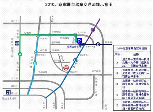 自駕車可經(jīng)以下路線行至花博會(huì)停車場,換乘免費(fèi)擺渡車前往天竺新國展參觀: