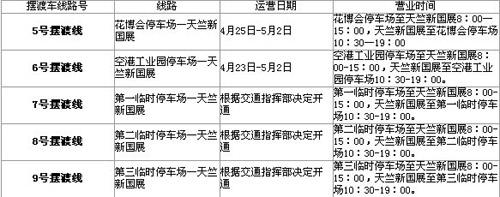 喜歡自駕車的朋友們,新國展在花博會(huì)設(shè)立了專門的停車場,大家可以把車停到這里然后乘坐車展的擺渡車直接前往展館。擺渡車的路線和運(yùn)營時(shí)間如下表: