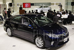 豐田汽車公司20日發(fā)布混合動(dòng)力中型轎車“SAI”。(圖片來源:共同社)