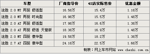 北京現(xiàn)代途勝是一款兼顧越野和城市兩種風格的SUV車型,其經(jīng)濟實用性表現(xiàn)突出。途勝的整車設計不僅時尚,各個細節(jié)還體現(xiàn)出設計者對城市SUV實用性的把握。根據(jù)網(wǎng)上車市價格監(jiān)測系統(tǒng)顯示,目前途勝全系優(yōu)惠幅度均有一定程度變化,具體車型以及價格如下: