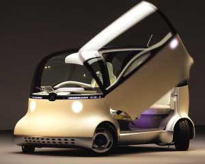 “PIXY”是僅供1人乘坐的低速移動(dòng)工具。其主要特點(diǎn)是:相當(dāng)于人行走的移動(dòng)速度,絲毫不會(huì)帶給人壓迫感的卵形車身、柔軟的外裝材料。由于裝載了可快速充電的電容器的發(fā)動(dòng)機(jī)驅(qū)動(dòng),因此不會(huì)有廢氣產(chǎn)生!癝SC”是可以前后放入兩個(gè)“PIXY”的輕型汽車合體,動(dòng)力采用的是燃料電池系統(tǒng)。