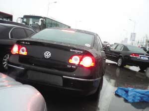 幾位大眾汽車的工作人員把雨衣扔在地上,頭也不回地上車了。