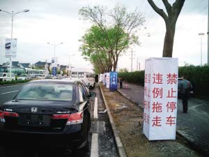 開展第二天就立起來的禁止停車警示牌看起來毫無作用。