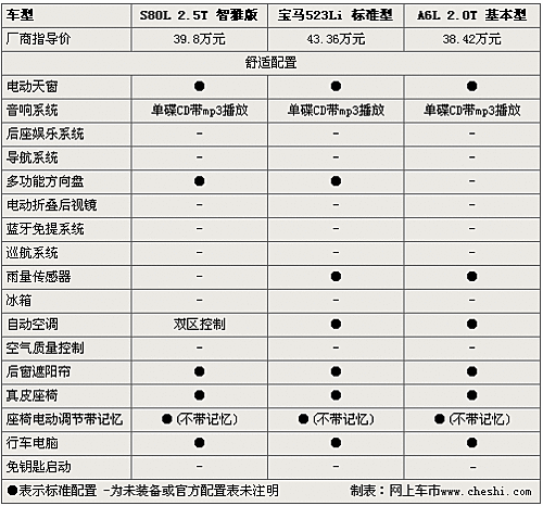 整體來(lái)看,三款車的配置只能滿足基本的需求,如果您要是有更高的需要還要選擇更高配置的車款,應(yīng)該說(shuō)三款車寶馬5的價(jià)格是最高的,但配置并不是最齊全的,S80L的配置要相對(duì)齊備一些,不過(guò)品牌影響力與寶馬還是有差距的。而A6L的配置雖然稍差一些,但售價(jià)是最低的。到底要選擇哪款,還是需要您仔細(xì)斟酌了。