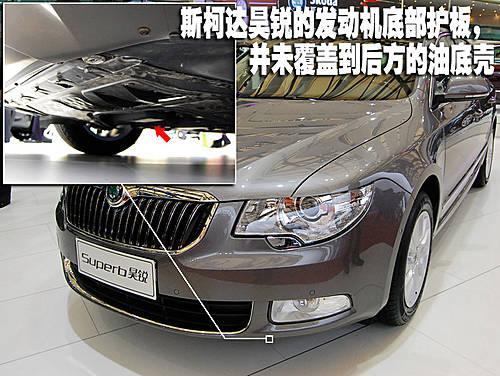 斯柯達昊銳的發(fā)動機下方護板面積同樣比較小,發(fā)動機油底殼位置下方?jīng)]有被護板覆蓋。但是其下護板的斜坡起設(shè)計也能夠?qū)Πl(fā)動機油底殼起到一定的保護作用。