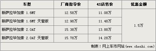 據4S店銷售人員介紹,現在消費者購買新薩拉畢加索可優(yōu)惠現金1.5萬元。新薩拉畢加索分為1.6L和2.0L兩種排量,1.6L車型分為手動和手動天窗兩款車型,經優(yōu)惠后售價分別降為了11.08萬元和11.48萬元。2.0L車型分為自動和自動天窗版,經優(yōu)惠后售價分別降到了13.88萬元和14.28萬元。銷售人員還介紹,2.0L車型店內有現車,而1.6L車型需消費者交1萬元訂金約等一個月才可提車。