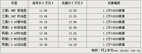 經(jīng)銷商表示,購買?怂谷弟囆统丝梢缘玫1.3萬元的現(xiàn)金優(yōu)惠外,還可以得到價值4500元汽車裝飾。優(yōu)惠后的?怂箖蓭1.8MT 舒適型售價僅為10.59萬。銷售人員還表示,目前福克斯大部分車型的有現(xiàn)車,顏色方面可選余地不大。