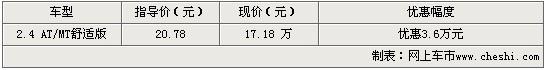 外觀上,08款別克君越改進(jìn)了尾燈造型,由原來的透明式鏡面電鍍鎢光燈罩改為亦動(dòng)亦靜的“展翼式”紅色燈組新設(shè)計(jì),布局設(shè)計(jì)突顯“動(dòng)靜合一”的產(chǎn)品理念,突出大氣尊貴與精致優(yōu)雅,既有堅(jiān)盾之“靜”,體現(xiàn)了別克家族血緣,呼應(yīng)了車尾線條,又“動(dòng)”如展翅,兼顧精致豪邁,流光溢彩紛呈。近日根據(jù)網(wǎng)上車市價(jià)格監(jiān)測系統(tǒng)顯示,目前上海地區(qū)購買別克君越全系車型可以得到3.6萬元的價(jià)格優(yōu)惠。具體車型報(bào)價(jià)如下表: