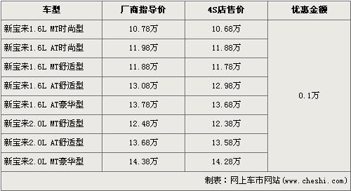 近日從一汽大眾北京地區(qū)4S店了解到,近期購(gòu)買新寶來(lái)系列車型的消費(fèi)者可以得到全系1000元的現(xiàn)金優(yōu)惠。新寶來(lái)全系共分8個(gè)車型,目前全系優(yōu)惠1000元現(xiàn)金。經(jīng)優(yōu)惠后,全系入門級(jí)的1.6L手動(dòng)時(shí)尚型售價(jià)降為10.68萬(wàn)元,最高配的2.0L 手動(dòng)豪華售價(jià)降到了14.28萬(wàn)元。
