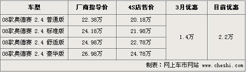 筆者從廣州本田北京地區(qū)經(jīng)銷商處了解到,目前銷售的08款?yuàn)W德賽降幅又出現(xiàn)了新的優(yōu)惠幅度。3月份左右,奧德賽全系優(yōu)惠到了1.4萬(wàn)元,而目前增加到了2.2萬(wàn)元,直接增加8000元,最低價(jià)格僅售20.18萬(wàn)元,F(xiàn)售的四款?yuàn)W德賽車型中,普通版座椅為絨布材質(zhì),其他三款均為真皮材質(zhì),現(xiàn)車多以黑色和銀色為主。另?yè)?jù)銷售人員介紹,新款的奧德賽有望在6月份上市銷售,但目前具體細(xì)節(jié)尚未公布。