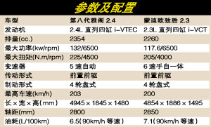 第八代雅閣的2.4升發(fā)動(dòng)機(jī)能釋放出的最大功率為132kw,蒙迪歐致勝的2.3升發(fā)動(dòng)機(jī)為117.6kw,在排量有微小差距的情況下,在數(shù)據(jù)上第八代雅閣占據(jù)了優(yōu)勢(shì)。從實(shí)際駕駛感受來(lái)看,在中低速加速階段,盡管兩款車(chē)均談不上有明顯的推背感,但第八代雅閣車(chē)身動(dòng)態(tài)表現(xiàn)顯然更為積極,加速也更為直接。看來(lái),關(guān)于蒙迪歐致勝動(dòng)力表現(xiàn)稍感不足的傳言,并不是空穴來(lái)風(fēng)。使得在動(dòng)力輸出這一影響操控表現(xiàn)最重要因素上,致勝失分不少。但在變速箱的搭配上,致勝以6速手自一體變速箱勝于雅閣,雅閣的5速自動(dòng)變速箱沒(méi)有手動(dòng)模式,盡管手動(dòng)模式似乎作用不大,但仍有少部分人樂(lè)于一試,以體驗(yàn)手動(dòng)駕駛的樂(lè)趣。