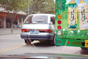 按照交通規(guī)則,馬路上的雙黃實線,車輛行駛既不能壓線,更不能跨越。在天河岑村附近的這條長興路,雙向四車道卻頻頻有車輛視中央的雙黃實線為無物。圖中左邊這輛廣州車牌的MPV,僅僅因為嫌前方的公交車行駛太慢,于是心急地從左方壓著雙黃實線超越前方的公交車。記者在現(xiàn)場看見,這輛車在超越中途,半個車身甚至越到了對面車道,影響相向車輛的行駛,相當(dāng)危險。(鄧莉)