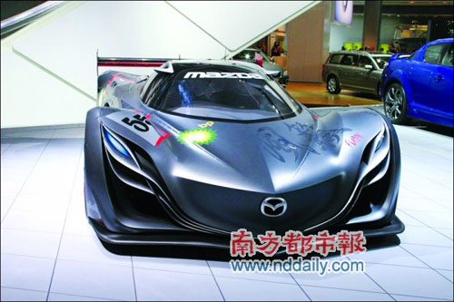 ●馬自達Furai概念車:這款車搭載一臺中置的馬自達三轉(zhuǎn)子20B引擎,由于使用E100乙醇燃料,其功率達到450馬力。Furai在原有賽車規(guī)格車身不變的情況下可以達到原來下壓力的80%.Furai利用獨特的吸氣模式將空氣導入進氣口,從而大大提高氣流的利用率。