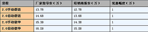 近日從雪佛蘭4S店了解到:景程現(xiàn)全系優(yōu)惠1萬元,但手動(dòng)擋基本沒有現(xiàn)車需預(yù)定。