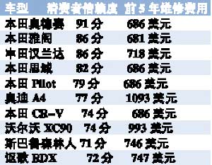 作為一種耐用消費(fèi)品,車輛的耐用性(使用成本)已經(jīng)成為購(gòu)車的主要衡量指標(biāo)。近日,美國(guó)財(cái)經(jīng)雜志《福布斯》評(píng)出了10大經(jīng)久耐用車型(Ten Toughest Cars)。評(píng)比標(biāo)準(zhǔn)涉及消費(fèi)者信賴度,新車故障率,前5年維修費(fèi)用及安全性能等綜合表現(xiàn),結(jié)果日系車大獲全勝。除了奧迪A4、沃爾沃XC90外,排名最耐用性前10名中有8款是日本車系,美國(guó)本土車型則全軍覆沒。其中本田一家就占了6款,奧德賽和雅閣分別位于排行榜的前兩位,這或許可以解釋日系車在全球范圍內(nèi)的成功。(王燦彬)