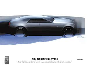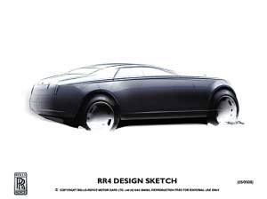 勞斯萊斯汽車有限公司日前公布了全新車型的首批設(shè)計(jì)草圖。作為勞斯萊斯家族的最新成員,此款代號(hào)為RR4的車型將于2010年正式發(fā)布。RR4將略小于幻影,并配備勞斯萊斯獨(dú)有的新型引擎。