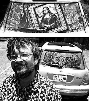 說到臟車藝術(shù),大家是不是有點(diǎn)糊涂?這得從美國人斯科特·韋德說起,家住得克薩斯州的他每隔一段時間就開著自己的車前往鄉(xiāng)下,在顛簸的土路上來回行駛。他不是在測試車的減震系統(tǒng),也不是在享受駕駛樂趣,而是為了把車弄得“風(fēng)塵仆仆”,給他的臟車藝術(shù)創(chuàng)作獲取材料。現(xiàn)年48歲的韋德畢業(yè)于得州大學(xué)藝術(shù)系,4年來,這位特立獨(dú)行的藝術(shù)家從不洗車,而是任憑車的后擋風(fēng)玻璃被灰塵覆蓋,然后將玻璃當(dāng)作畫布,將灰塵當(dāng)作顏料,展開藝術(shù)創(chuàng)作。