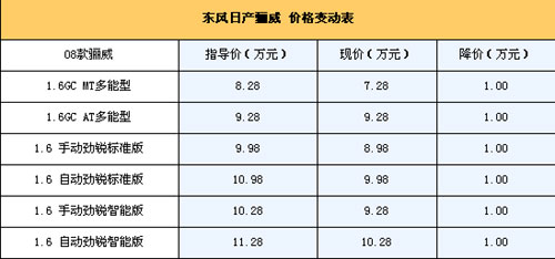近日,我們從北京地區(qū)的一些東風(fēng)日產(chǎn)經(jīng)銷(xiāo)商處了解到,驪威目前全系優(yōu)惠1萬(wàn)元。詳情下表。