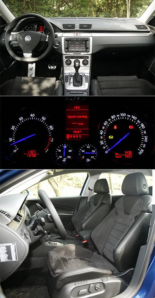 R36的內(nèi)飾設(shè)計(jì),仍提供駕駛與乘員相當(dāng)豐富的感官。維持車(chē)系有條不紊的簡(jiǎn)約風(fēng)格,R36車(chē)室內(nèi)已不見(jiàn)任何一絲木紋飾板;取而代之的則是完整的T字型金屬飾板,以縱橫之勢(shì)鋪陳其中。少了分豪華,科技與性能質(zhì)感卻油然而生。儀表板部份,過(guò)去大眾慣用的紅色指針,在R36身上想當(dāng)然地?fù)Q上了湛藍(lán)樣式;搭配白色字樣的刻度顯示,確實(shí)帶給駕駛員一番截然不同的性能風(fēng)味。