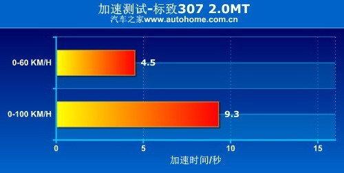 不過單憑2.0L的發(fā)動機(jī)我們很難相信標(biāo)致307的表現(xiàn)會如此接近速騰冠軍版,車重應(yīng)該也是關(guān)鍵因素之一,要知道冠軍版速騰的重量達(dá)到了1.4噸,而標(biāo)致307最重的也才1.3噸出頭,這使其有能力在與速騰冠軍版的加速比拼中望其項(xiàng)背。而在實(shí)際測試中我們發(fā)現(xiàn),307的5速手動變速箱也拖累了它的成績,由于換擋行程不夠緊湊,導(dǎo)致307在換擋時(shí)動力銜接不夠順暢,損失了部分時(shí)間,但不管怎么說,9.3秒的成績還是相當(dāng)有說服力的,值得推薦。