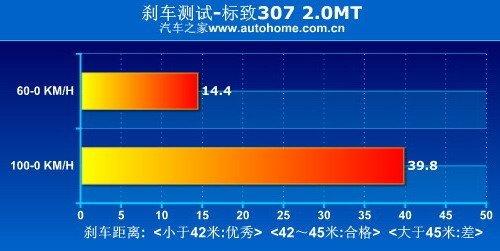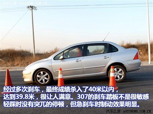 標(biāo)致307沒有裝備什么特殊的剎車系統(tǒng),也沒有速騰冠軍版那樣的寬胎,但剎車成績還是不錯(cuò)的,39.8米比我們定義的優(yōu)秀剎車距離最高線42米要短不少,而且在連續(xù)剎車測試中,剎車系統(tǒng)和輪胎的熱衰性控制的很好,基本沒有出現(xiàn)因過熱而增大距離的情況。只是由于307的懸掛調(diào)教偏軟,全力制動時(shí)前懸掛被壓縮到極致,后輪幾乎沒有附著力,此時(shí)車輛穩(wěn)定性比較令人擔(dān)憂。