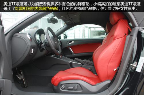 奧迪TT敞篷可以為消費者提供多種顏色的內(nèi)飾搭配,這次我們到店實拍的這臺TT敞篷采用了紅黑相間的內(nèi)飾顏色搭配,紅色的座椅顏色鮮艷,估計很能討好女性車主的歡心。