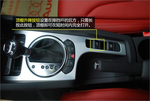 開啟軟頂?shù)陌粹o在變速桿的后方位置。該按鈕的形狀與普通的車窗升降按鈕無異,而實(shí)際操作的方法也一模一樣。只需長按該按鈕20余秒,頂棚即可完全放下。藍(lán)天白云就在頭頂?shù)母杏X真好。