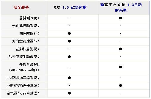 對應(yīng)飛度1.3MT手動型的是新嘉年華1.3MT時尚型,兩者價格相差3900元,新嘉年華以一項(xiàng)主要的被動安全配置出——即前排側(cè)氣囊。此外,還多出了外接音頻接口和兩個揚(yáng)聲器,少了方向盤前后調(diào)節(jié)、后排座椅角度可調(diào)以及花粉過濾。