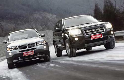 同出名門,且個性鮮明,在車身尺寸和價格上也都相近。因此,神行者2和X3自然而然成為直接競爭對手。有鑒于性能特點(diǎn),在進(jìn)入測試內(nèi)容前,我們先明確一下對它們的稱呼。顯然,“SUV”這個概念寬泛、模糊的名詞缺乏準(zhǔn)確性。那就按照廠家各自的定位來歸類它們的屬性吧,路虎神行者2——越野車、寶馬X3——SAV(Sport Activity Vehicle)。
