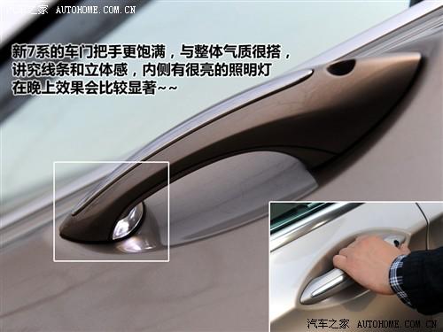 當(dāng)天色暗下來(lái),僅憑尾燈就可以使我在車流中輕易地找到前面行駛的750Li。這種展翼式效果的尾燈大概是當(dāng)下最流行的,略帶一點(diǎn)波浪形,于起伏有致中將動(dòng)感一一展現(xiàn)。車門(mén)把手屬于外觀細(xì)節(jié)中不太受重視,但卻非常需要與整體風(fēng)格協(xié)調(diào)。新7系的把手列飽滿,而且和車身氣質(zhì)很搭,內(nèi)側(cè)有亮度不錯(cuò)的照明燈,晚上效果會(huì)較顯著。