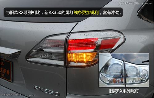 新RX350變化最大的莫過于全新設計的組合式尾燈了。更流線型的造型,更絢麗的LED燈組合,營造出跑車般的視覺效果。