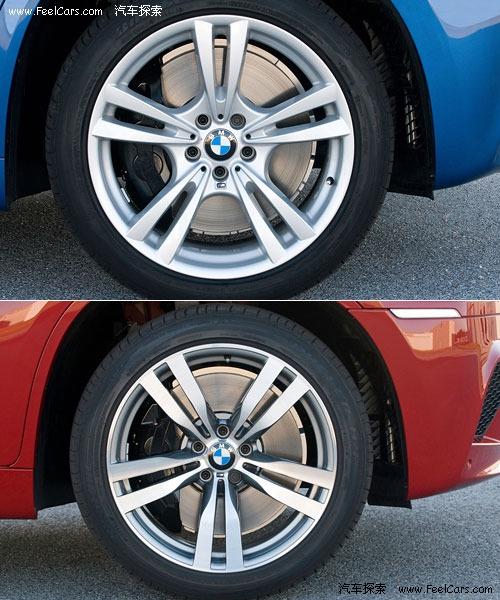 其他方面,前輪275/40R20、后輪315/35R20的高性能運動輪胎進一步加強了魁梧車身的運動氣息,細心觀察還可發(fā)現(xiàn)X5M同X6M的20寸超輕輪轂的造型雖然相似但還是有些許不同。為了保證足夠的制動力和良好的視覺效果,四輪均采用了四活塞卡鉗的制動系統(tǒng)。