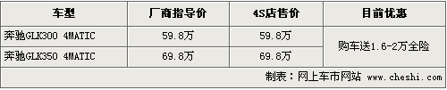 筆者從奔馳北京地區(qū)經(jīng)銷商處了解到,現(xiàn)在消費者購買奔馳GLK系列已經(jīng)不需要再加價,購車同時4S店可以贈送1.6萬-2萬元不等的全車保險,但是GLK兩款車在價格上還沒有出現(xiàn)優(yōu)惠幅度,F(xiàn)在店內(nèi)有銀色,白色等現(xiàn)車供應(yīng),內(nèi)飾有米色和灰色兩款可供選擇。