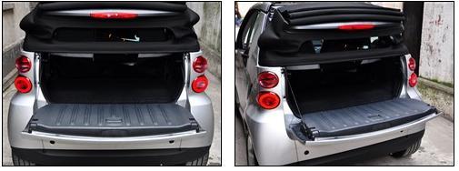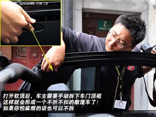 如果想徹底享受陽光的話,那就干脆將它全部打開!當車窗開啟完畢后其實還有一項工作是你值得去做的,那就是去掉車門上方的頂框讓smart變成一輛不折不扣的敞篷車!