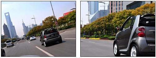 幾個(gè)小時(shí)的接觸已經(jīng)讓我對(duì)smart fortwo有了一定的認(rèn)識(shí),漂亮的外形,個(gè)性的內(nèi)飾,浪漫的體驗(yàn)和超強(qiáng)的人氣等等都是我對(duì)它的認(rèn)可!但這些還不夠,因?yàn)闀r(shí)間的原因,我還沒(méi)能體會(huì)到身材嬌小在城市中穿行的優(yōu)勢(shì),更沒(méi)有機(jī)會(huì)在順行車位的縫隙中找到隨意的感覺(jué)。