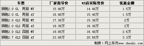 新老獅跑齊降價 最高優(yōu)惠3.3萬