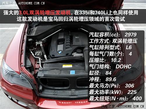 X6一種有兩款車,分別是xDrive35i和xDrive50i,此次我們體驗(yàn)的是前者,它搭載的是和已經(jīng)引進(jìn)的335i一樣的發(fā)動(dòng)機(jī):3.0排量雙渦輪增壓。這款發(fā)動(dòng)機(jī)可以說是寶馬回歸渦輪增壓領(lǐng)域的首次嘗試,效果怎么樣?335i已經(jīng)被證明相當(dāng)猛。