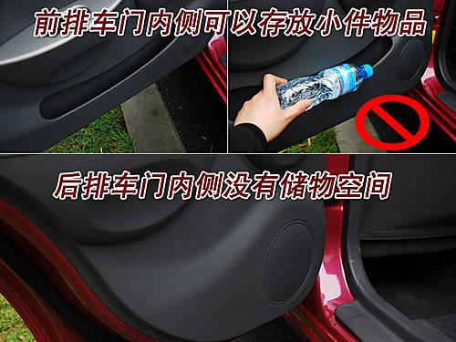 這款車(chē)的前排車(chē)門(mén)內(nèi)側(cè)帶有一個(gè)細(xì)長(zhǎng)條狀的存儲(chǔ)空間,可以放報(bào)紙、雜志及其他小件物品,礦泉水瓶是無(wú)法放入其中的。而后排車(chē)門(mén)內(nèi)側(cè)則取消了這一設(shè)計(jì),也許是考慮到后排有了儲(chǔ)物夾層的關(guān)系。